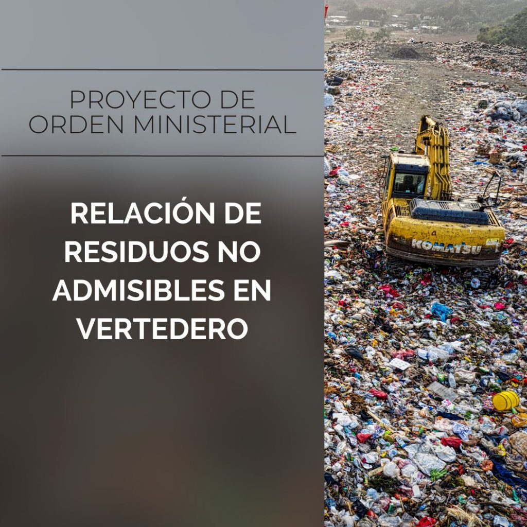 El pasado 2 de agosto se abrió el plazo para presentar alegaciones del proyecto de orden ministerial que establece una relación de residuos que no se aceptarán en vertedero por ser aptos para la preparación para la reutilización y el reciclado u otro tipo de valorización, según dispone el artículo 6.3 del Real Decreto Real Decreto 646/2020, de 7 de julio, por el que se regula la eliminación de residuos mediante depósito en vertedero.