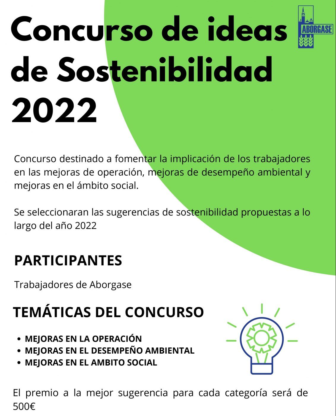 ABORGASE presenta la primera edición del CONCURSO DE IDEAS DE SOSTENIBILIDAD enfocadas a la mejora de eficacia de procesos, mejora del desempeño ambiental y mejoras en el ámbito social, dirigido a los trabajadores de ABORGASE del Centro Integral de Tratamiento de R.S.U. Montemarta-Cónica y de las Plantas de SelecciónTransferencia de Bollullos de la Mitación y Espartinas.